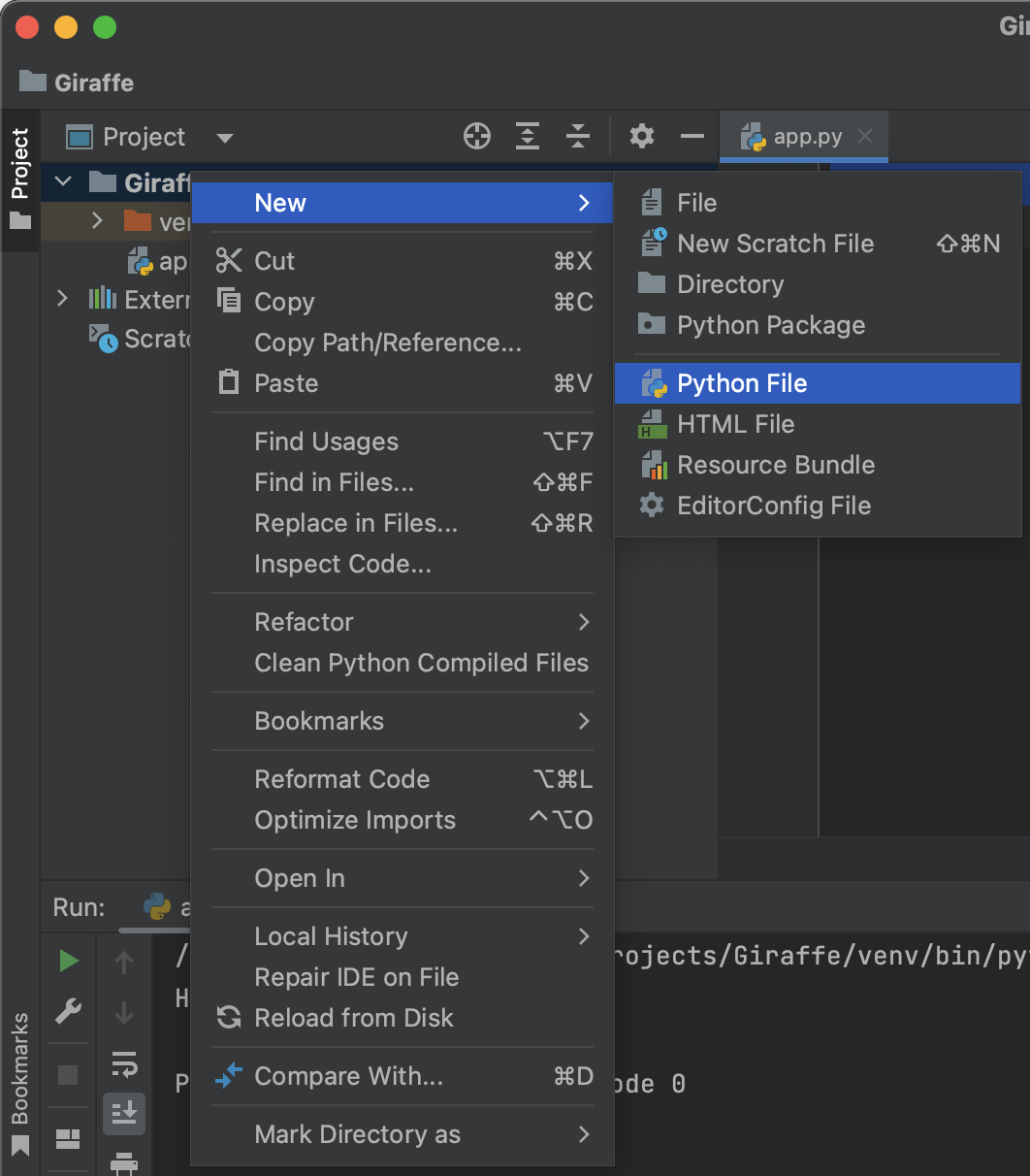- 생성된 프로젝트를 우클릭-New-Python File