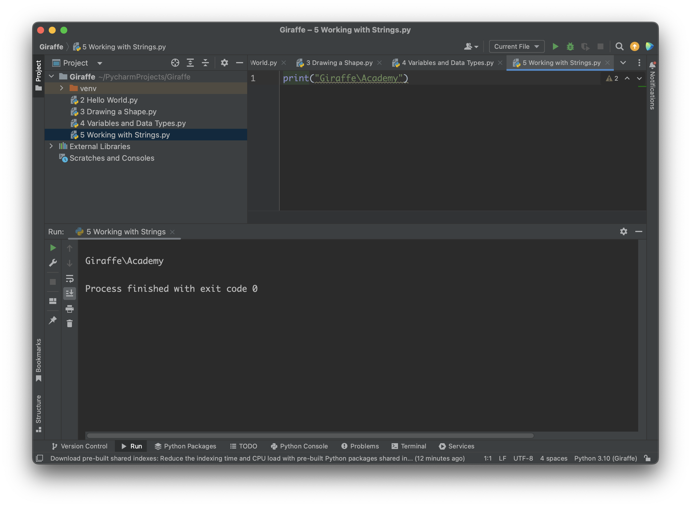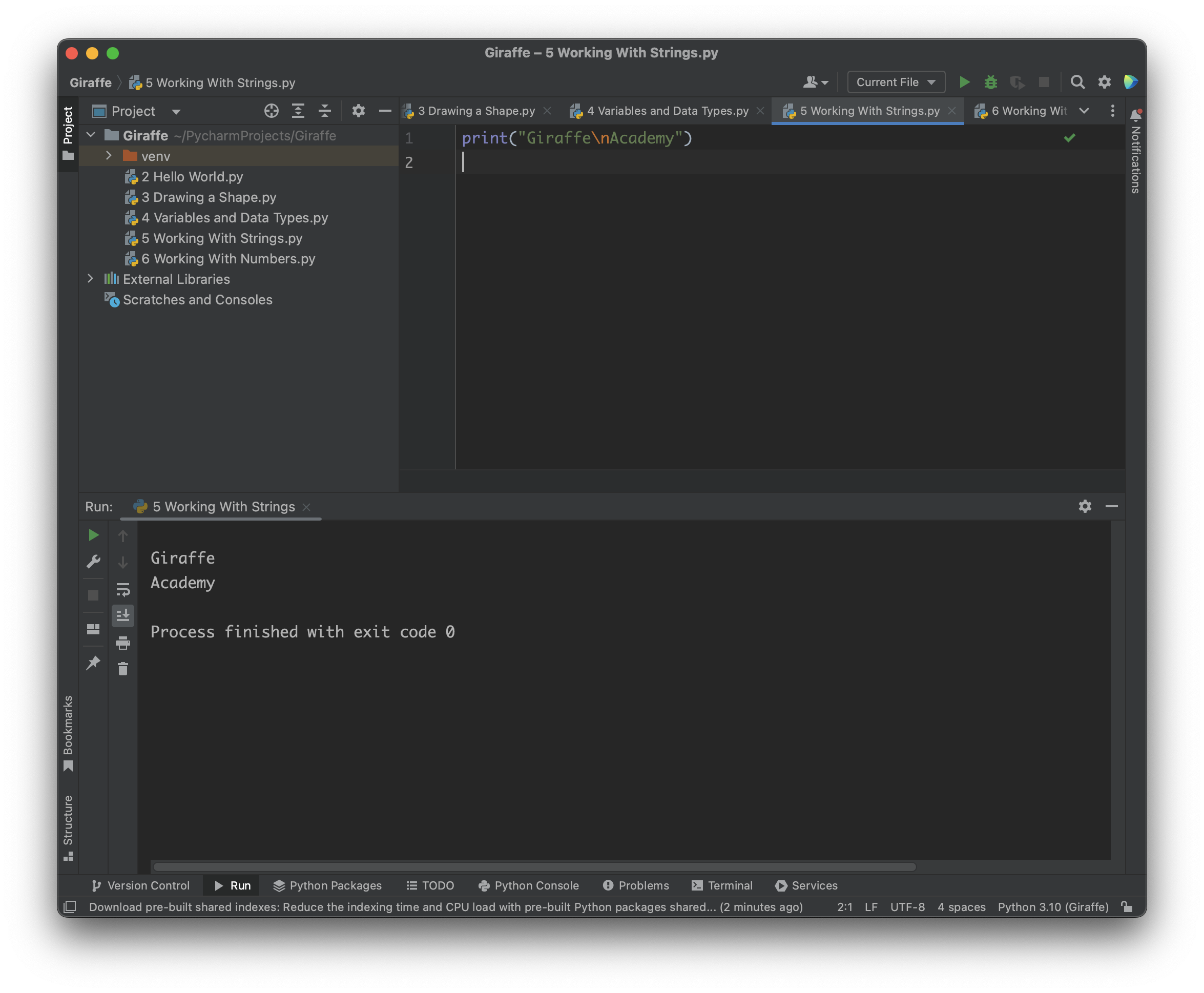 - \n: 문자열 사이에 넣으면 해당 지점부터 줄을 바꿀 수 있다(new line)