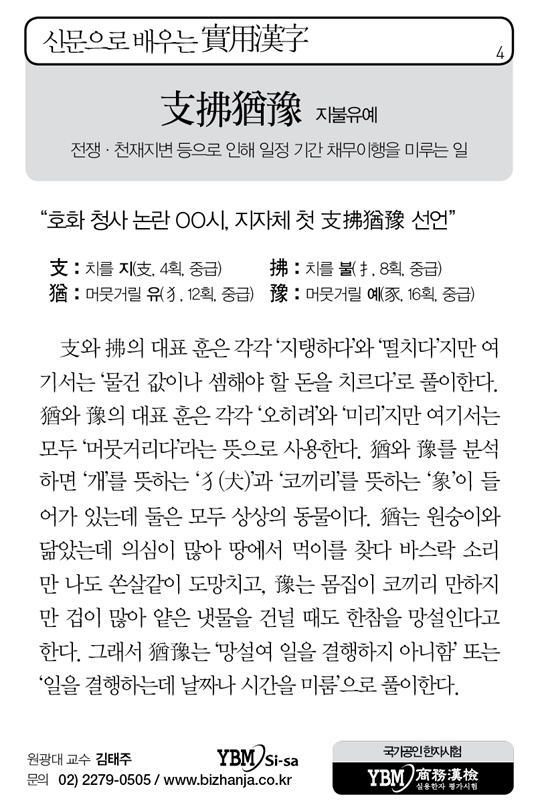 신문으로 배우는 실용한자 支拂猶豫 지불유예