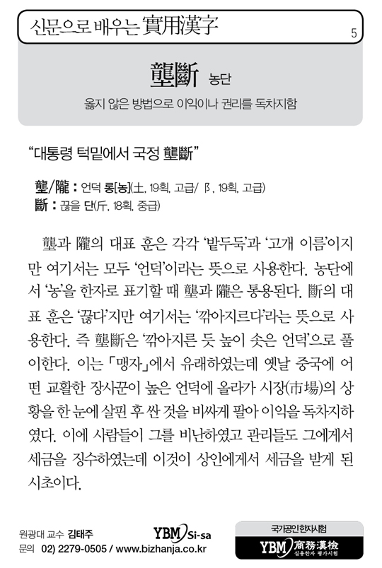 신문으로 배우는 실용한자 壟斷 농단